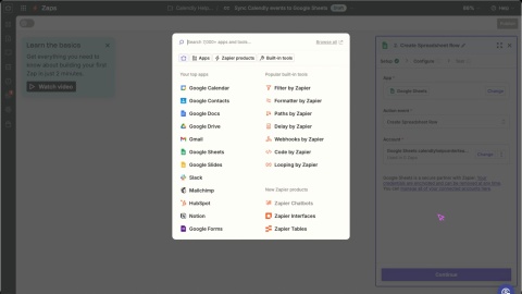 Zapier verbindet Calendly mit Hunderten von Apps – wie Google Tabellen, Redtail CRM und RingCentral – ohne jegliche Programmierkenntnisse. Verwenden Sie es, um Aktionen zu automatisieren, nachdem Meetings geplant oder abgesagt wurden.