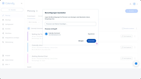 Sie können anderen Personen Zugriff darauf gewähren, Ihre persönlichen Ereignistypen anzuzeigen oder zu bearbeiten. Dies erleichtert die Zusammenarbeit und das Teilen von Planungs-Links.