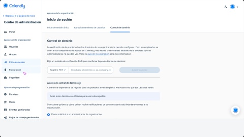 El Centro de administración te permite administrar usuarios, grupos y configuraciones en toda tu organización. Puedes acceder al Centro de administración desde la barra lateral izquierda de tu cuenta de Calendly.