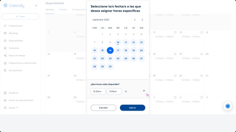 Tu disponibilidad en Calendly es una combinación de tus programas, días festivos y horas ocupadas de los calendarios conectados. Puedes administrar todo desde la página Disponibilidad.