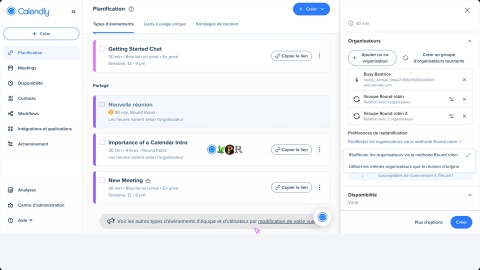Si formas parte de nuestros planes Teams o Enterprise y necesitas un evento más avanzado para varias personas, puedes aprovechar nuestras funciones mejoradas Colectivo y Rotatorio. Configura eventos para varias personas con una combinación de organizadores que siempre asistirán y grupos rotativos de otros organizadores.