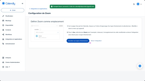 Pour connecter votre compte Zoom, suivez les étapes de cet article.