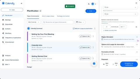 Vous pouvez mettre à jour vos paramètres de type d'événement dans Calendly pour contrôler comment et quand les personnes peuvent prendre rendez-vous avec vous.