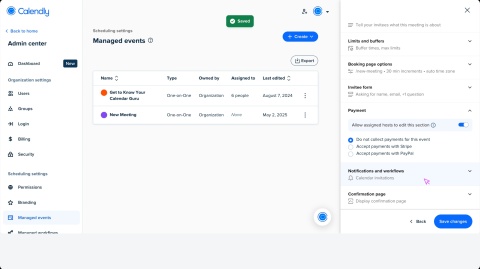 Managed events are standardized event types that you can assign across members of your organization. If your users tend to host similar events, like demo calls or advising sessions, then managed events can help keep these events uniform for all users.