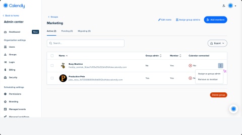 Admins can create and delete groups in Calendly to organize users and assign admin permissions. Follow these steps to create or delete your groups.