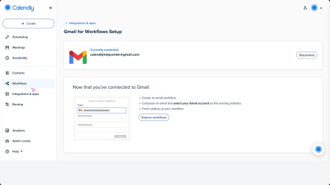 - You can only send Workflow emails from one connected email account (Gmail or Outlook). If both are connected, Calendly will default to sending from [email protected].