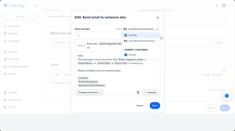 - You can send Workflow emails to any email address, even if the recipient isn’t part of your Calendly organization or attending the meeting.