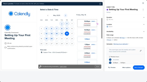 Are times showing as unavailable when they should be free? The Troubleshoot Tool can help you see why invitees can't book with you and how to fix it.
