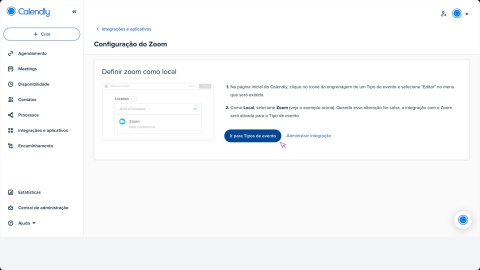 - Os administradores do Zoom devem pré-aprovar o Calendly no Zoom Marketplace.
