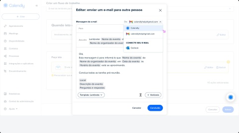 - Você pode enviar e-mails de fluxos de trabalho para qualquer endereço de e-mail, mesmo que o destinatário não faça parte da sua organização do Calendly ou não esteja participando da reunião.