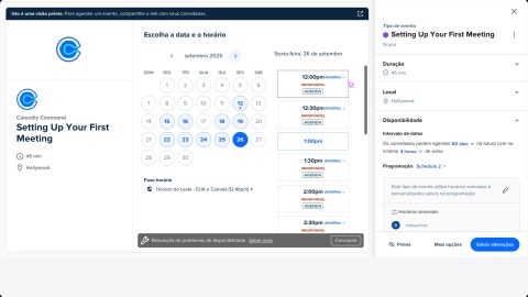 Está tendo problemas para encontrar horários disponíveis na sua página de agendamento? A Ferramenta de Diagnóstico pode ajudá-lo a ver por que os convidados não podem agendar com você e como corrigir isso.